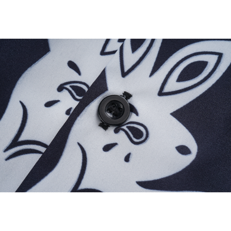 • Playful Rabbit Print: The shirt’s defining feature is its eye-catching rabbit print, adding a touch of playful personality to this classic silhouette. This unexpected motif, often rendered in a stylized or artistic manner, sets this shirt apart from typical bowling shirts.