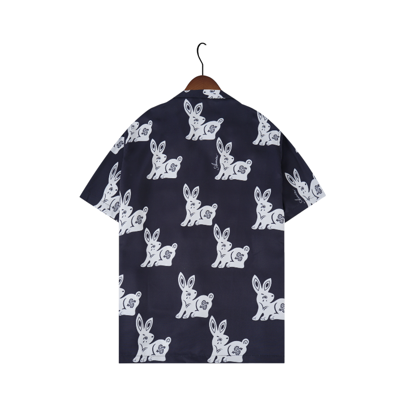 • Classic Bowling Shirt Design: The shirt retains the classic elements of a bowling shirt, including the relaxed fit, camp collar, and short sleeves. This timeless design provides a versatile canvas for the unique rabbit print.