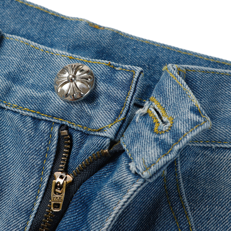- Signature Design Elements: True to the Chrome Hearts aesthetic, these jeans feature subtle yet impactful embellishments, including custom hardware and stitching details that set them apart from ordinary denim.