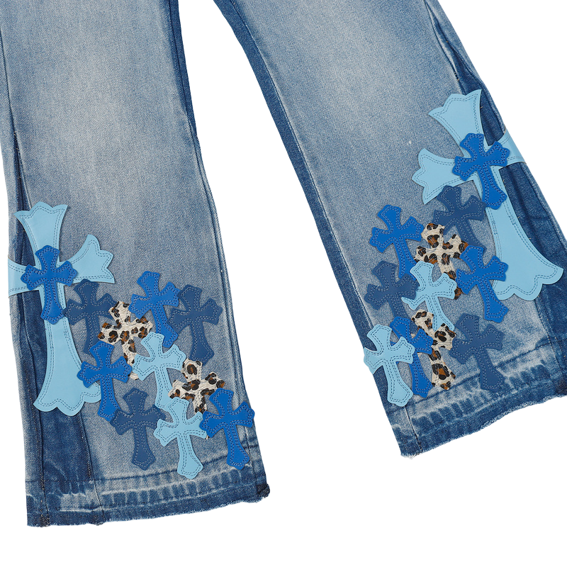 Chrome Hearts Official introducing the top quality and premium “Chrome Hearts Flared Jeans With Leather Label Jeans”