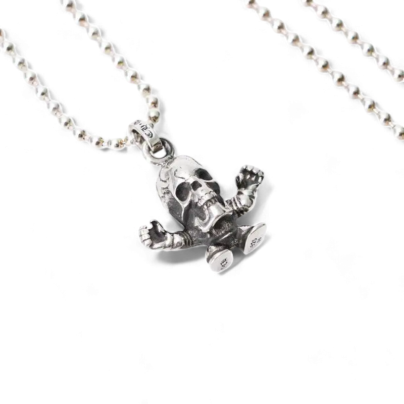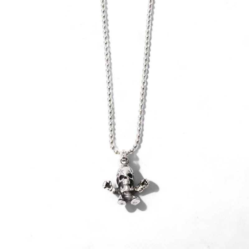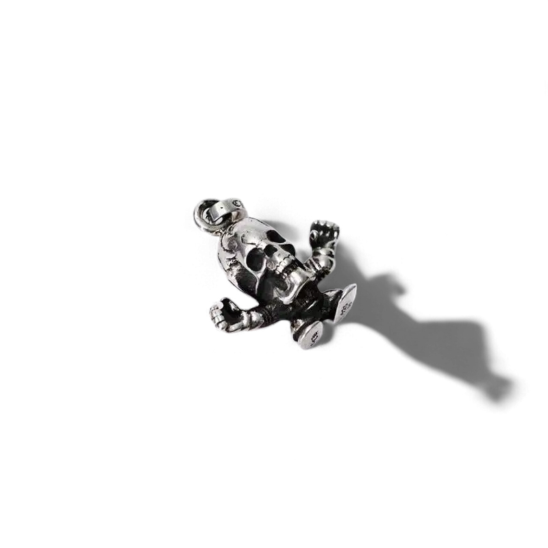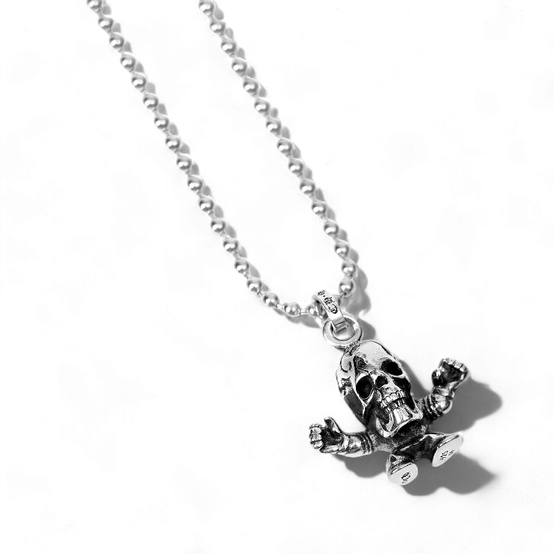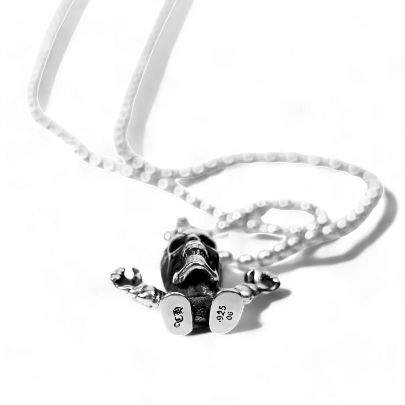 This Foti Harris Teeter Charm shows a laughing skull with hands outstretched. Artist Joe Foti decided to put a comical twist to the usual seriousness of Chrome Hearts to make it easier to pair with casual outfits.