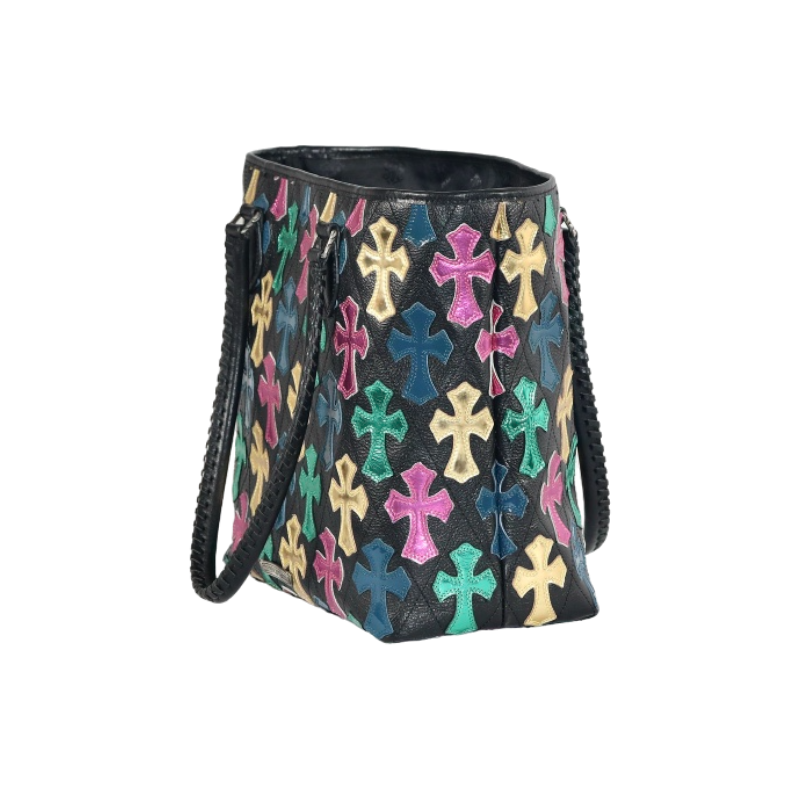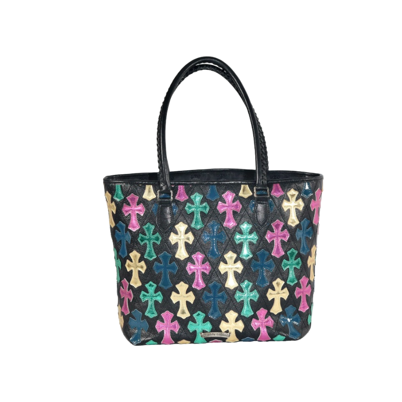 Chrome Hearts Quilted Leather Multicolor Cross Patch Tote Bag