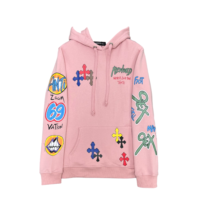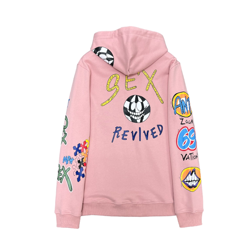 • Edgy “Sex Revived” Graphic: The centerpiece of this hoodie is the provocative “Sex Revived” graphic, a bold testament to the brand’s unapologetic and rebellious spirit. The graphic is expertly printed using high-quality inks, ensuring vibrant colors and lasting durability.