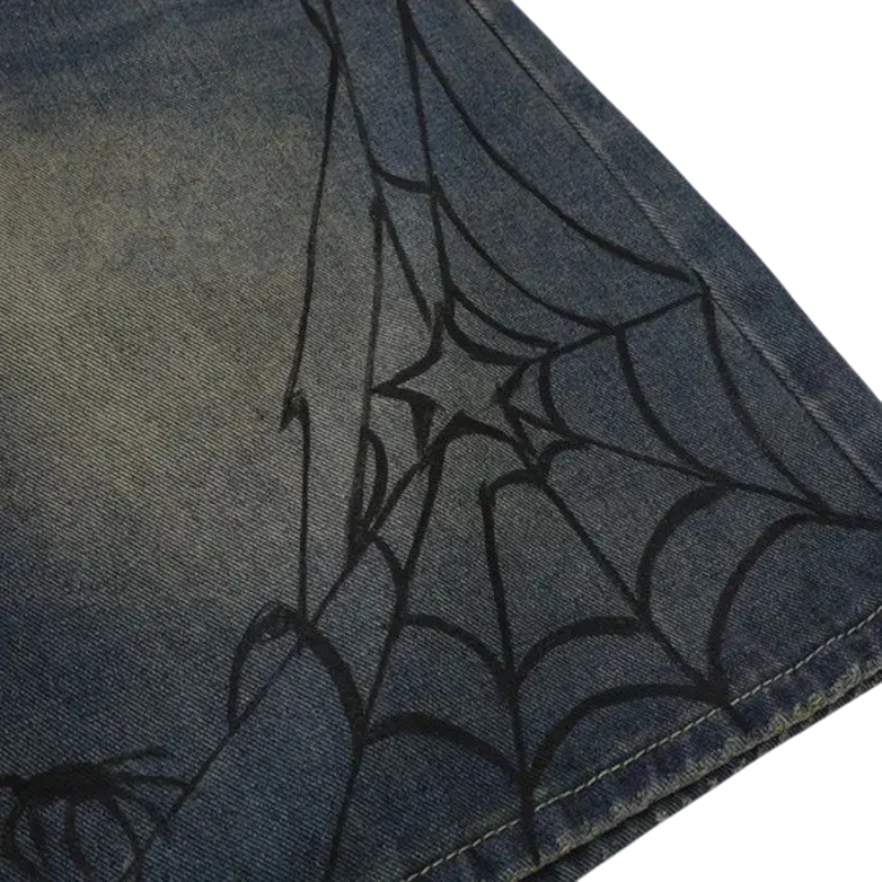 Sp5der Print Denim Shorts: Where Urban Art Meets Classic Denim