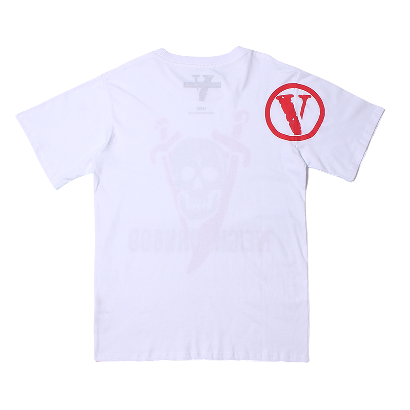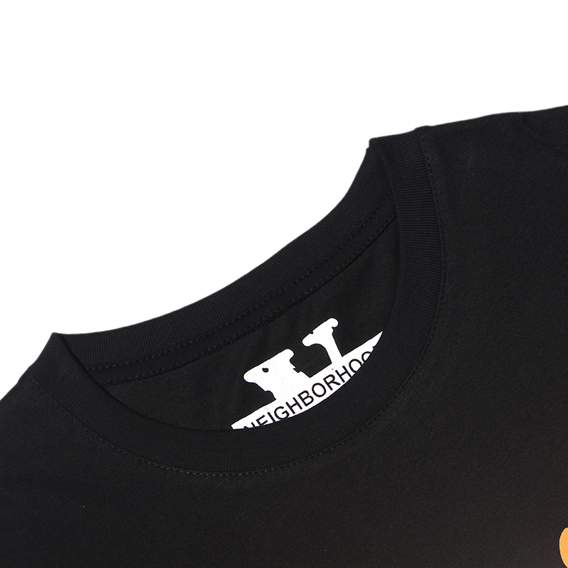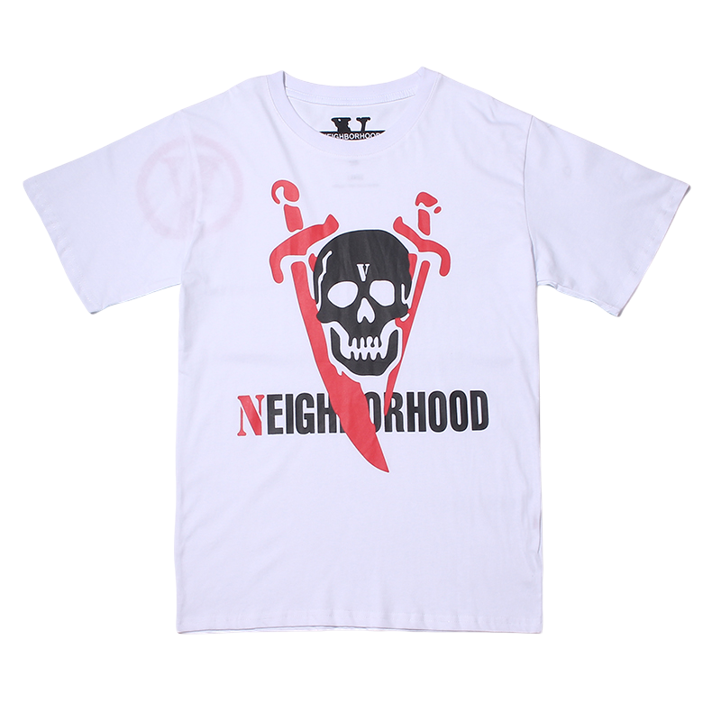 - Bold Branding: Featuring prominent branding from both VLONE and Neighborhood, this t-shirt makes a bold statement. Expect to find iconic VLONE logos alongside distinctive Neighborhood motifs, perhaps incorporating skulls, Japanese characters, or other signature elements.